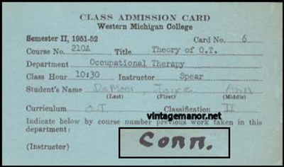 JOYCE ANN DEMOOR 1951 - 1952 CLASS ADMISSION CARD