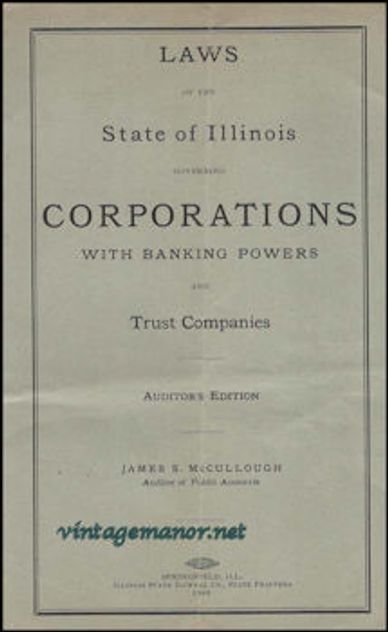 Laws of the State of Illinois Governing Corporations with Banking Powers and Trust Companies.